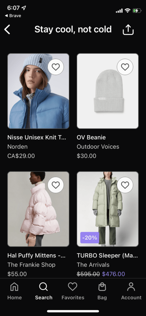 Grazie a queste informazioni, l'app presenta un feed semplice e personalizzato fatto apposta per voi. Vedrete i consigli dei vostri negozi preferiti, le offerte dei negozi correlati e gli articoli di tendenza che potrebbero piacervi.