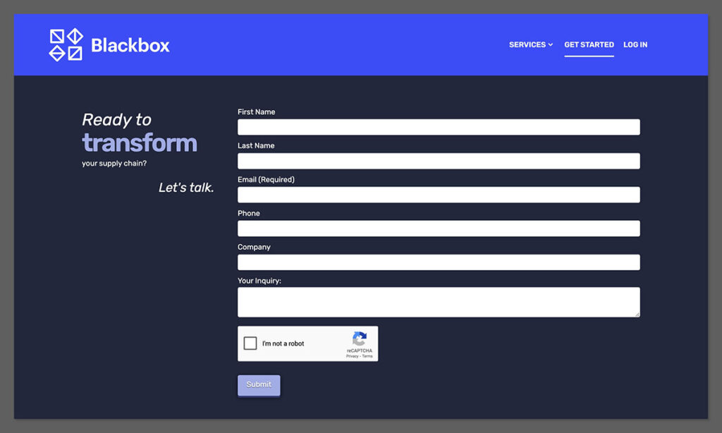 Un lucru care diferențiază Blackbox este... abonament bazat doar pe aplicațieNu te poți pur și simplu înscrie și începe să expediezi. Trebuie să completezi formularul lor „Expediere cu Blackbox” și să aștepți aprobarea.